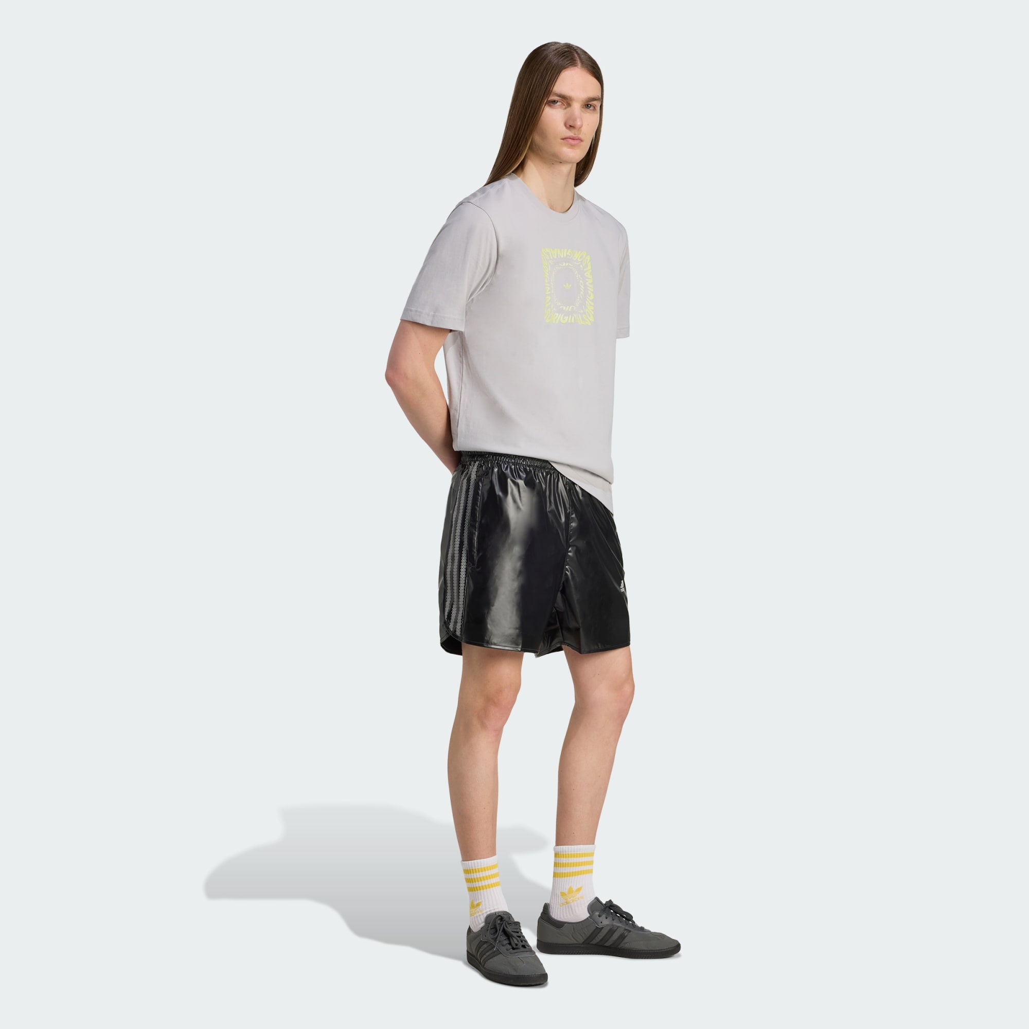Kulüp ve balo kültürünün coşkusundan ilham alan bu adidas şortla kendini ifade et. Pürüzsüz poliüretan yapı, petek desenli 3 bant ve hareketli Trefoil logosu detaylarına sahiptir. Hem minimal hem de maksimum detayları bir arada toplayarak çok yönlülüğüyle benzersiz tarzın için mükemmel bir temel oluşturur.
