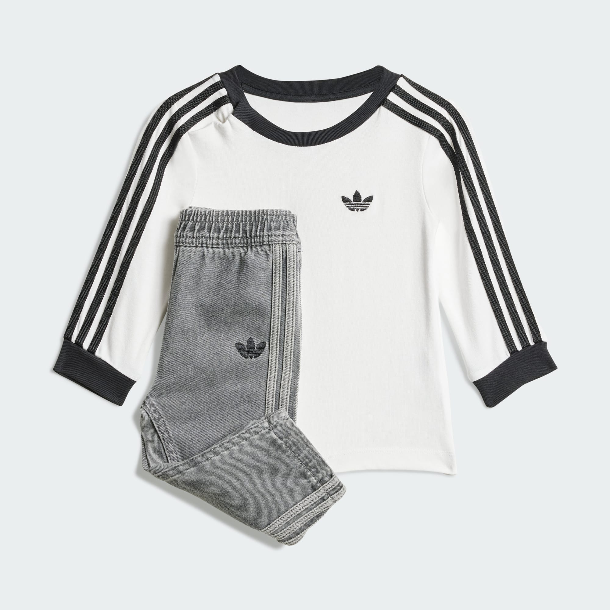 adidas'ın bu bebek seti, ebeveynlerin bildiği ve sevdiği rahat Originals havasını ancak yepyeni bir dokunuşla sunuyor. İçerisinde uzun kollu tişört ve eşofman altı da yer aldığı için minik yavrunuz günlük maceralara hazır olacaktır. Malzeme tıpkı en sevdikleri battaniye gibi yumuşak ve rahat hissediliyor.