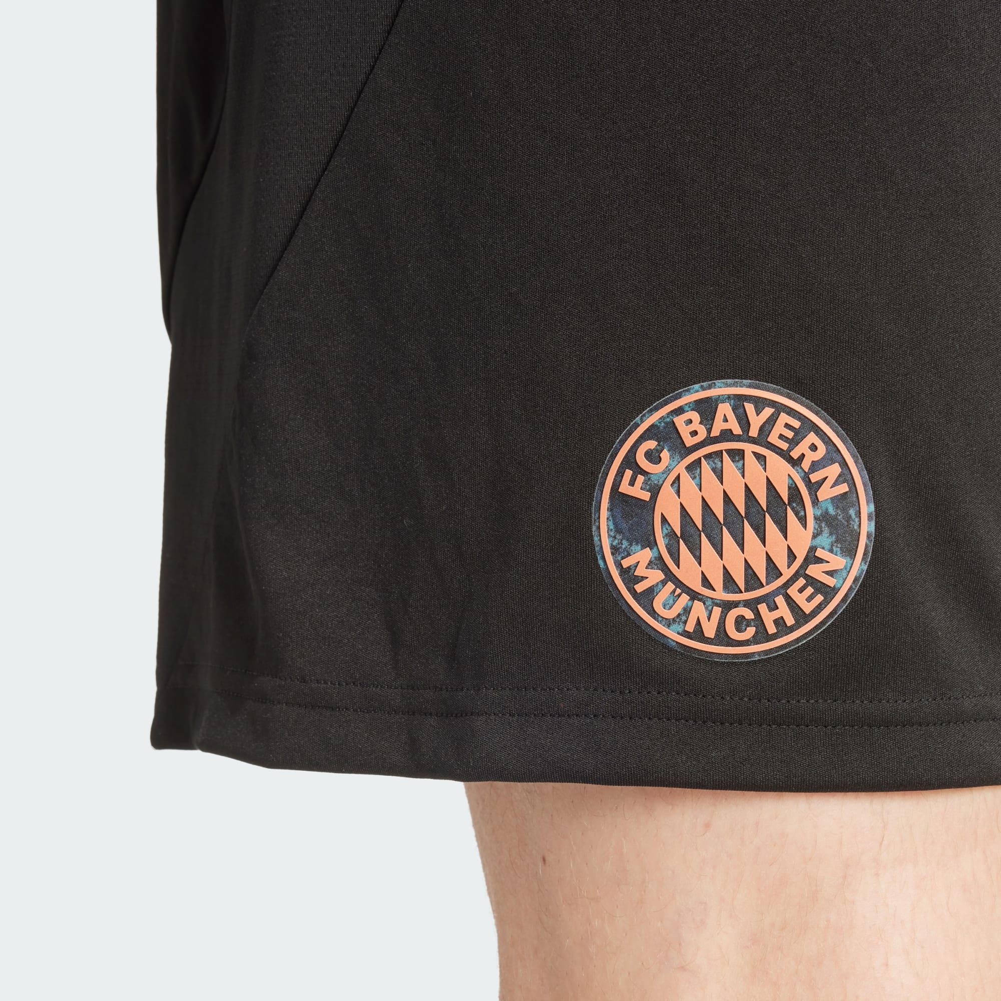 Geri dönüştürülmüş malzemelerle üretilen, FC Bayern deplasman renklerinde taraftar şortu