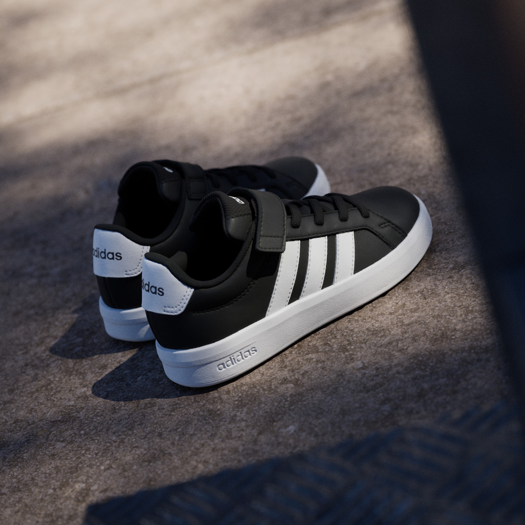 Bu ayakkabılar, ikonik adidas Grand Court'a modern bir yenilik getiriyor ve çocukların seveceği bir tasarımda üst düzey konfor sunuyor. Elastik bağcıkları sayesinde oyunlarına hız kesmeden devam edebilir ve kolayca giyip çıkarabilirler. Esnek burun, genç adımlara esneklik katarken üstteki bant sıkı ve sabit bir uyum sağlar. Ebeveynler, tutuş ve dayanıklılık için de güvenebilecekleri iz bırakmayan kauçuk taban yapısını çok beğenecek. Bu şık ve sağlam ayakkabı, stil ve işlevi ön planda tutuyor. İmzası haline gelen marka logosu ise klasik görünümü tamamlıyor. Taban, topuk ve dil kısmındaki logolar genç moda tutkunlarının ilgisini çekerken, renkli 3 Bant detayı bu ayakkabının eğlence için tasarlandığını hatırlatıyor.