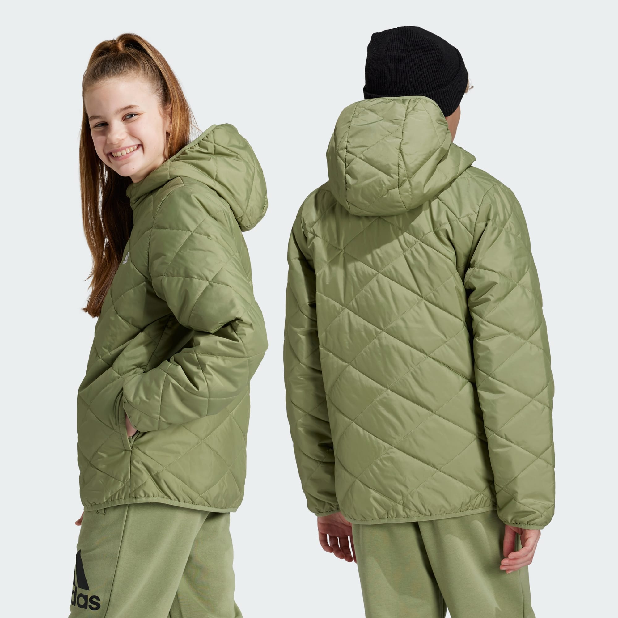 Çocuklar için tasarlanmış bu adidas ceket, benzersiz kapitone tasarımıyla soğuğu engeller ve şık bir görünüm kazandırır. Kullanmadığında bağlı cep içine katlayabilir ve güneş çıktığında çantanda veya cebinde taşıyabilirsin. Dış etkenlerden koruyan bir kapüşona ve kısa kış günlerinde görünür kalmanı sağlayacak reflektörlü detaylara sahiptir. Bu ürün, %100 geri dönüştürülmüş malzemeden üretilmiştir.Halihazırda üretilmiş malzemeleri tekrar kullanarak, atıkların azalmasına, sınırlı kaynaklara olan bağımlılığımızı ve ürettiğimiz ürünlerin ayak izini azaltmaya yardımcı oluyoruz.