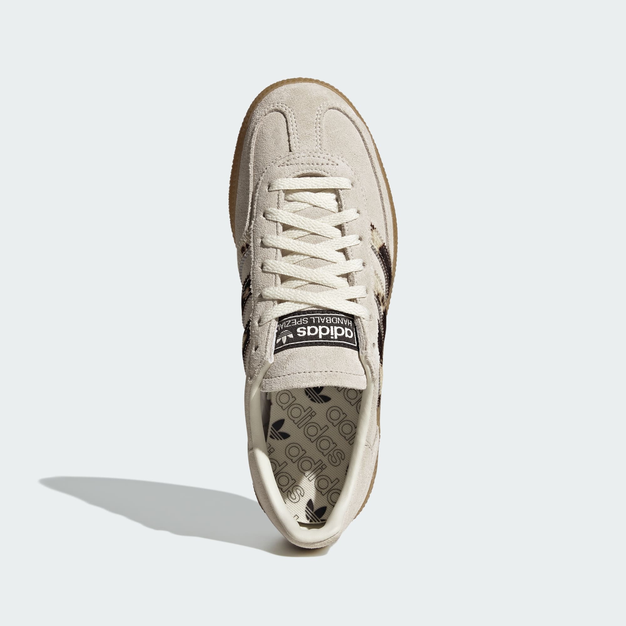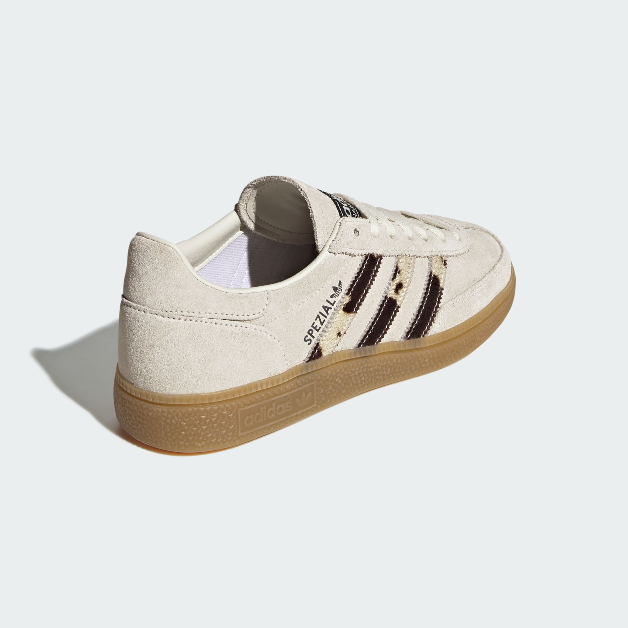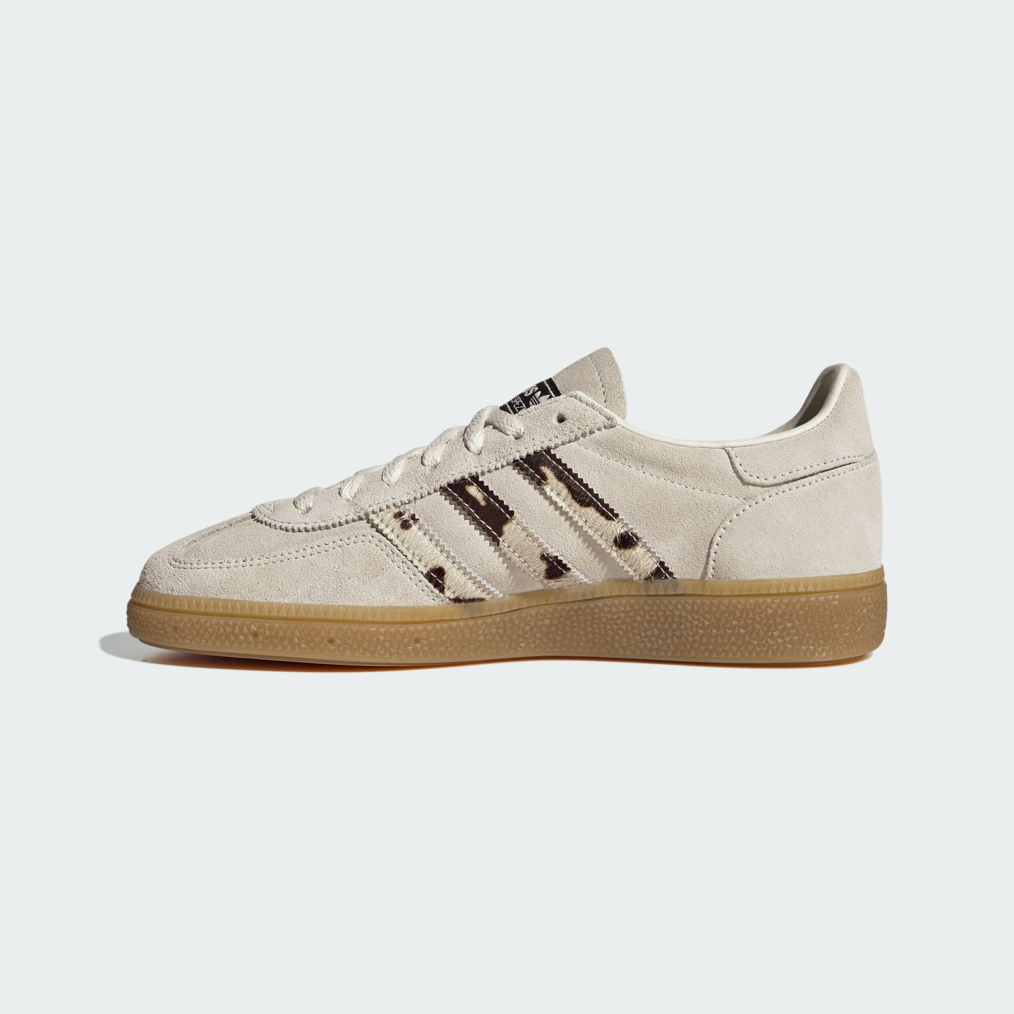 Back in the day, the adidas Handball Spezial was worn for the fast-paced, hard-hitting game of handball, but these days they bring their action to the streets. This sport fashion-minded version has a structured leather upper with a smooth textile and synthetic lining to keep feet comfortable when you slip in. The low-profile rubber sole provides traction on the pavement and beyond. Serrated, animal-print 3-Stripes and white-letter branding adds the finishing touch. Wear these trainers with jeans, cargo pants, track pants and beyond.