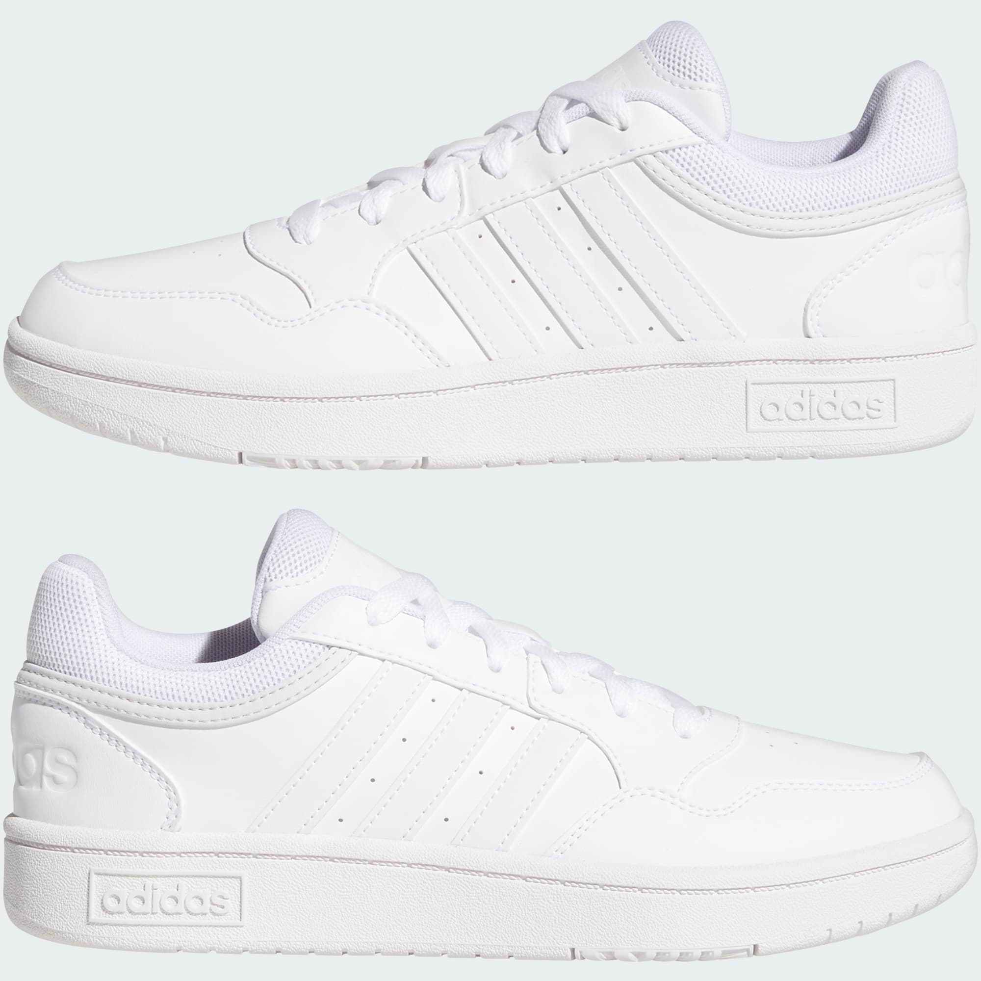 Model, topuk kısmındaki ikonik adidas logoları ile tamamlanır.