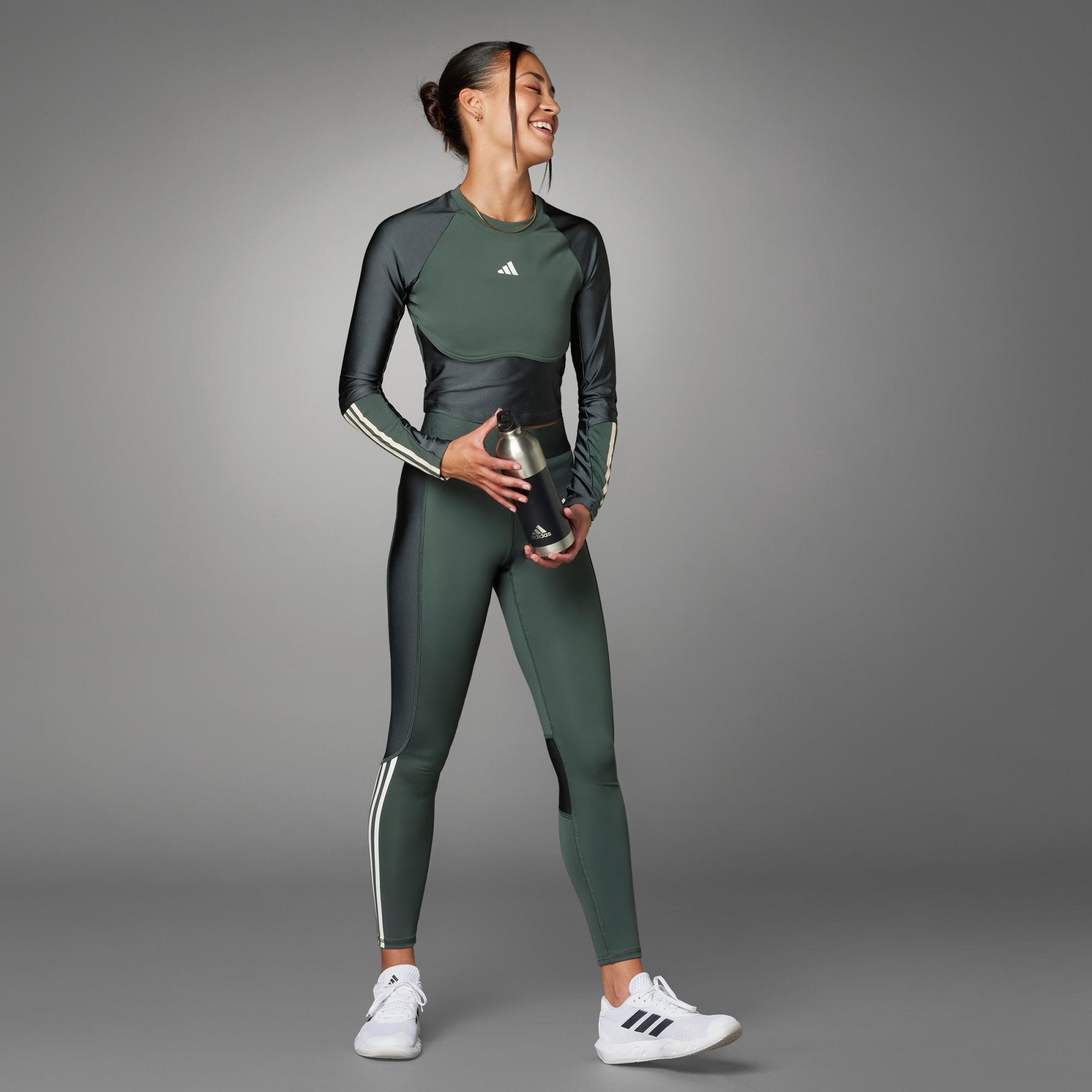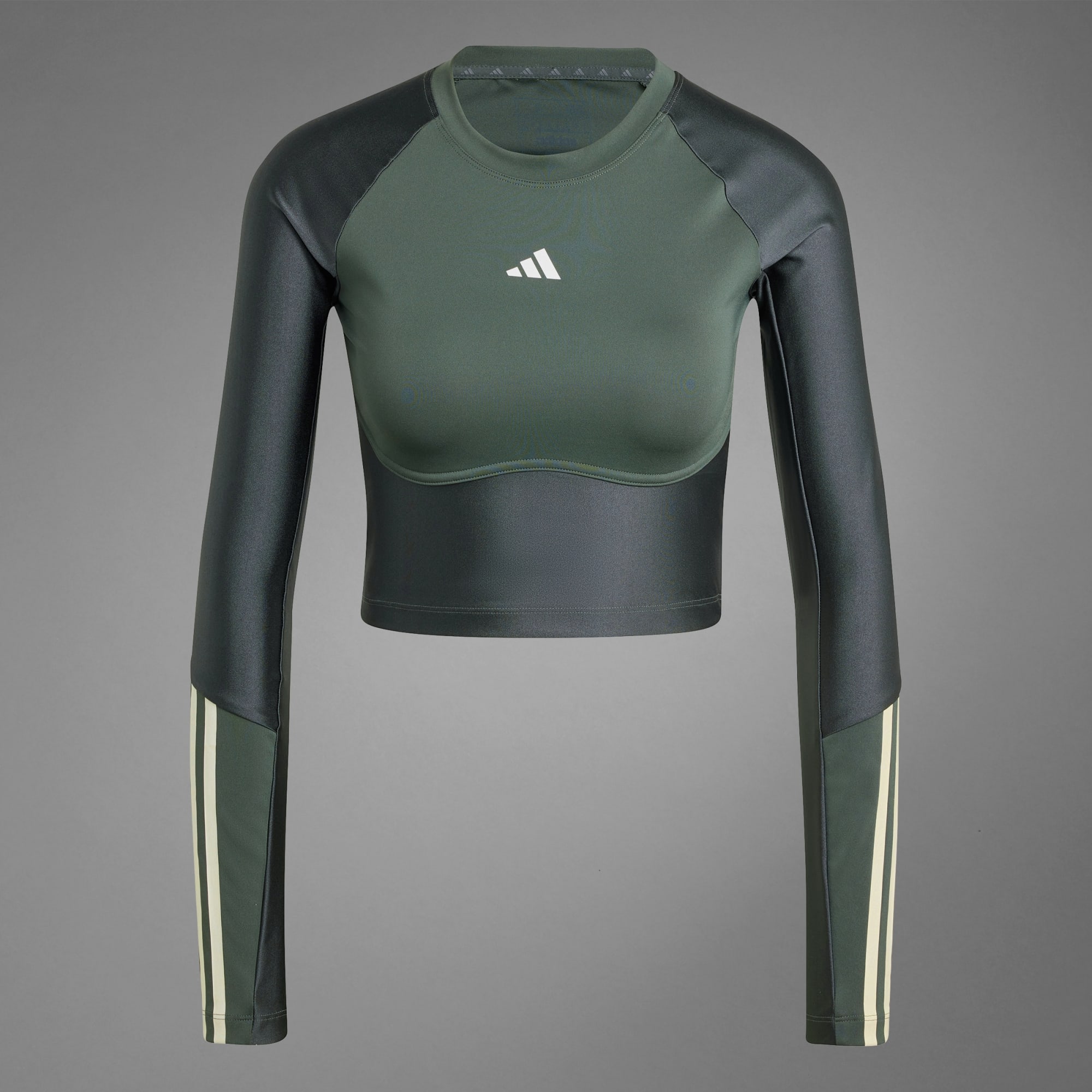 Sportif ama sevimli. Şık koleksiyonun en yeni sezonunda, parlak kumaşlar Hyperglam enerjisiyle buluşuyor. Şık silüetler ve cesur detaylar, hem spor salonunda hem şehir sokaklarında çarpıcı görünümler sunmak için bir araya geliyor. Hyperglam Shine Training Crop Uzun Kollu Üst, koleksiyonun tasarım anlayışını güçlü bir şekilde ortaya koyar. Şık kısa silüeti üstün kaliteli esnek kumaş ve feminen göğüs altı dikişleriyle birleştiren parça, antrenman sırasında iyi görünmen ve iyi hissetmen için tasarlandı. Parlak kumaş panelleriyle sportif estetiği bir üst seviyeye çıkaran model, nemi uzaklaştıran AEROREADY teknolojisi ile kuru kalmanı sağlar. Bu ürün, en az %70 oranında geri dönüştürülmüş malzemeden üretilmiştir. Halihazırda üretilmiş malzemeleri tekrar kullanarak, atıkların azalmasına, sınırlı kaynaklara olan bağımlılığımızı ve ürettiğimiz ürünlerin ayak izini azaltmaya yardımcı oluyoruz.