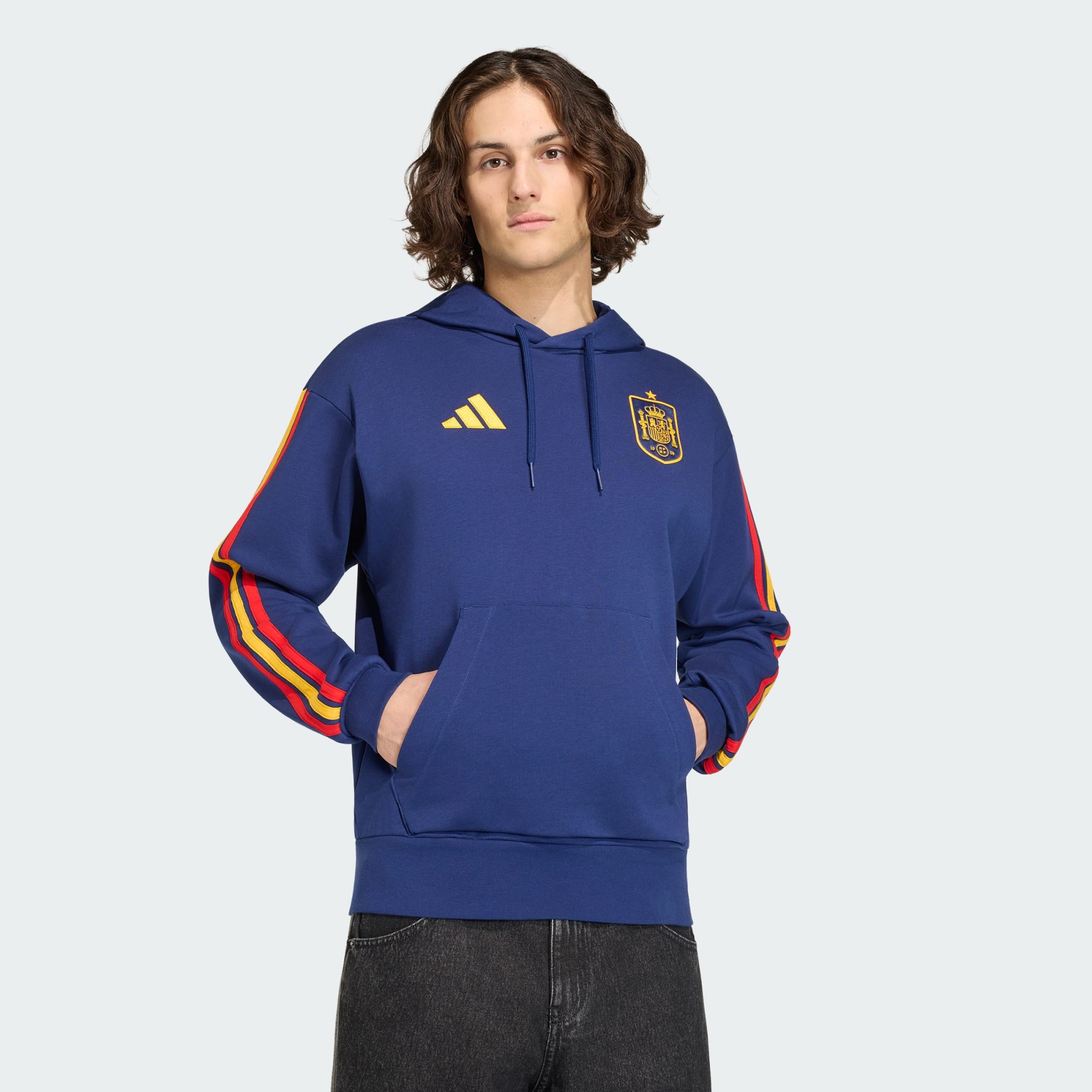 Taraftarlar için tasarlanan, sokak stilini çağdaş konfor anlayışıyla bir araya getiren İspanya DNA Kapüşonlu Üst ile futbol kültürünü selamla. Temiz ve çok yönlü görünümüyle her gardıroba kusursuz bir uyum sağlar. Yumuşak havlu kumaştan üretilen bu parça, serin günlerde seni sıcak tutacak rahat bir his sunar. Dayanıklı kumaşı ve bağcıklı kapüşonla yenilenen kesimi sayesinde uzun ömürlüdür. İnce marka detaylarıyla tamamlanan bu kapüşonlu üst, adidas tarafından futbol kültürünü yansıtmak ve tutkunu gururla taşımana olanak tanımak için üretildi.