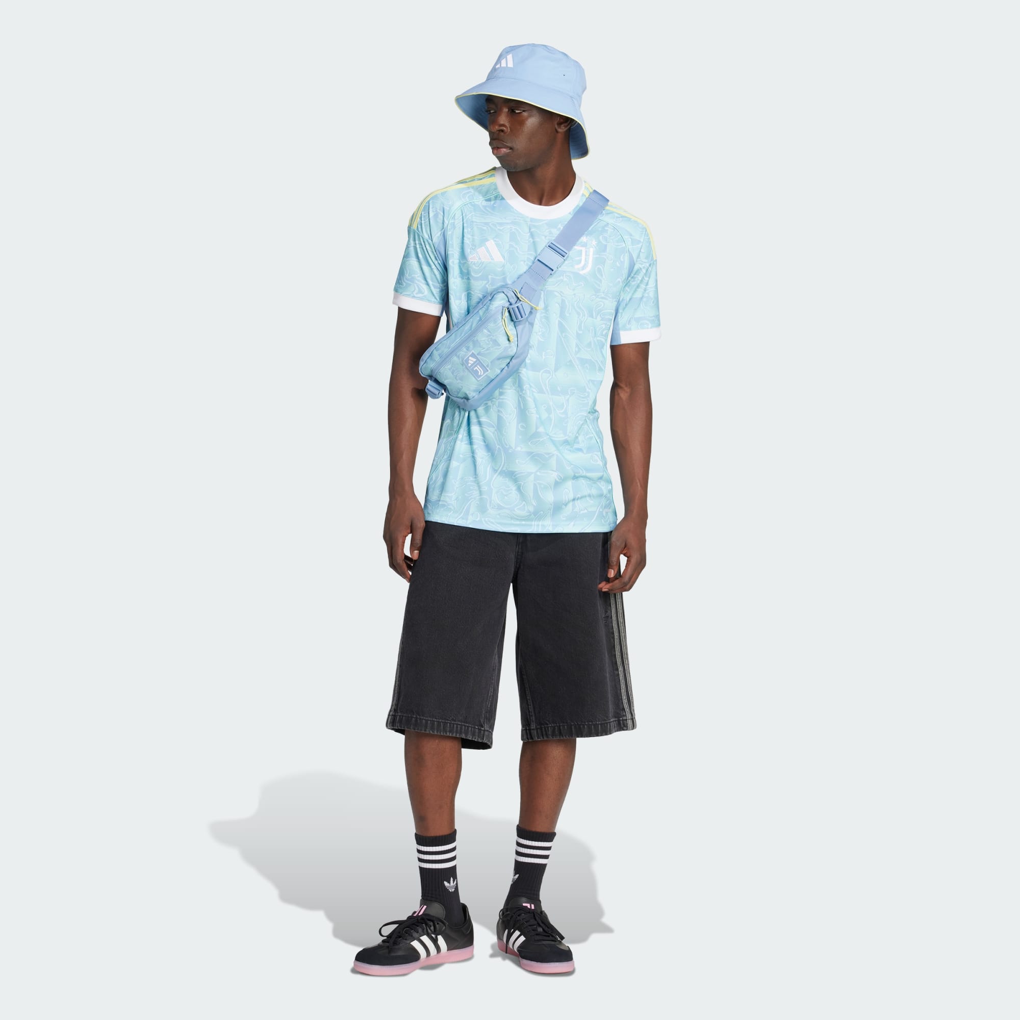 Rahat yaz havasını yepyeni futbol sezonuna taşı. Mavi pastel tonları ve Torino şehir bayrağından ilham alan sarı ve beyaz detayları ile öne çıkan adidas Juventus forma, maç günlerinde harika görünmeni sağlar. Nemi uzaklaştıran AEROREADY teknolojisi ve nakış detayları, konforu ve gururu bir arada sunar.