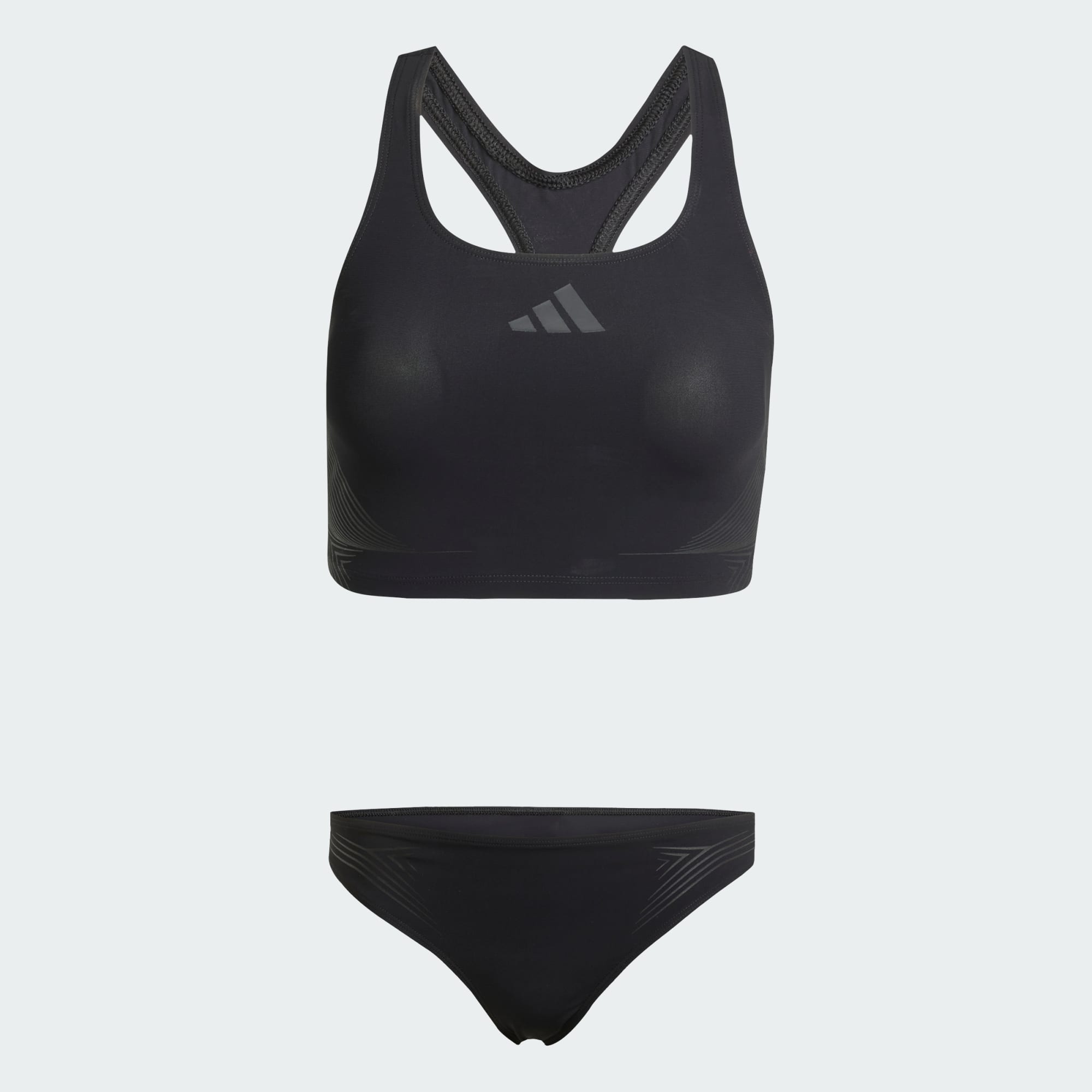 Belirli oranda geri dönüştürülmüş malzemelerle üretilen, Y sırt tasarımlı sportif bikini