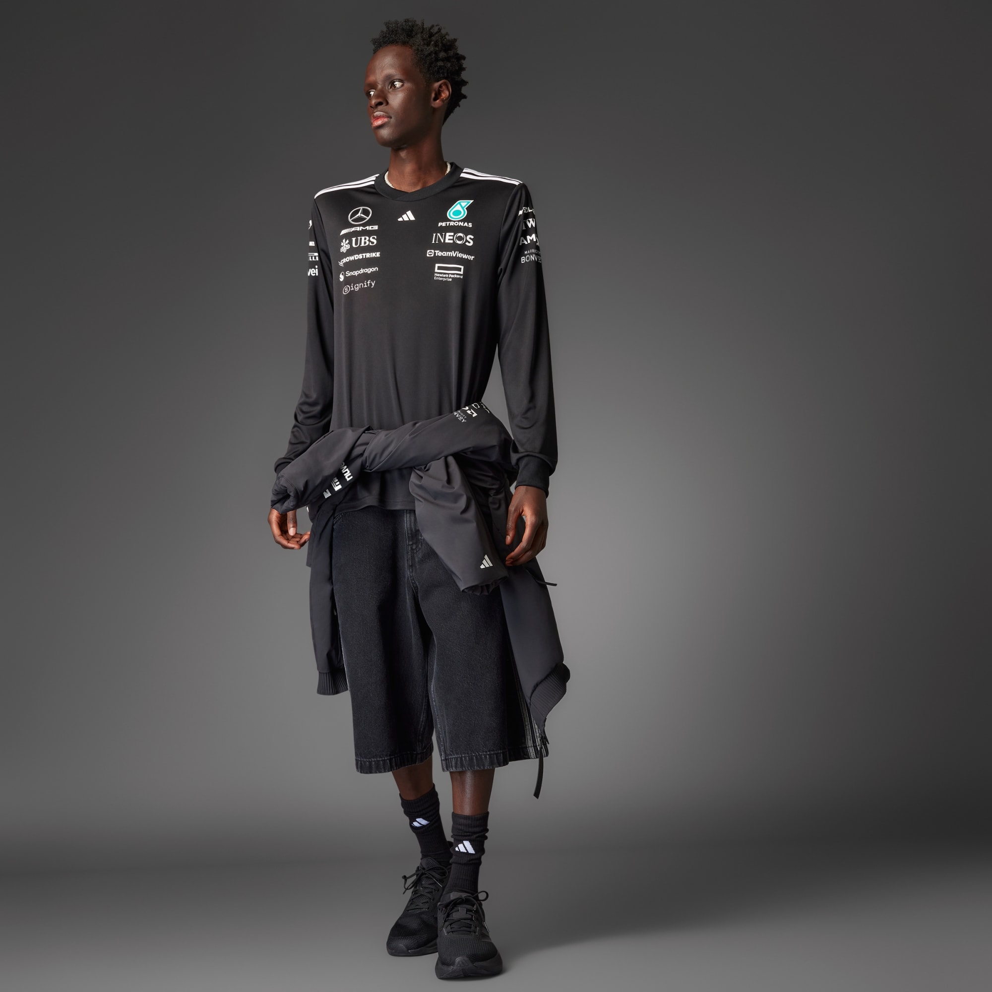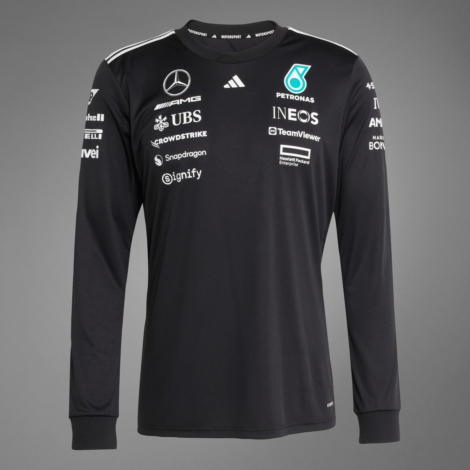 adidas motor sporları koleksiyonuna ait bu şık Mercedes - AMG Petronas Formula One Team forması ile yarış pistini eve taşı. Yumuşak dokuma kumaştan üretilen uzun kollu model, tribünlerde veya oturma odanda yarışları izlerken serin ve konforlu kalmanı sağlar. Ön kısmındaki çarpıcı takım ve sponsor logoları, takımına desteğini gösterirken nemi uzaklaştıran AEROREADY teknolojisi, teri vücudundan uzaklaştırır.