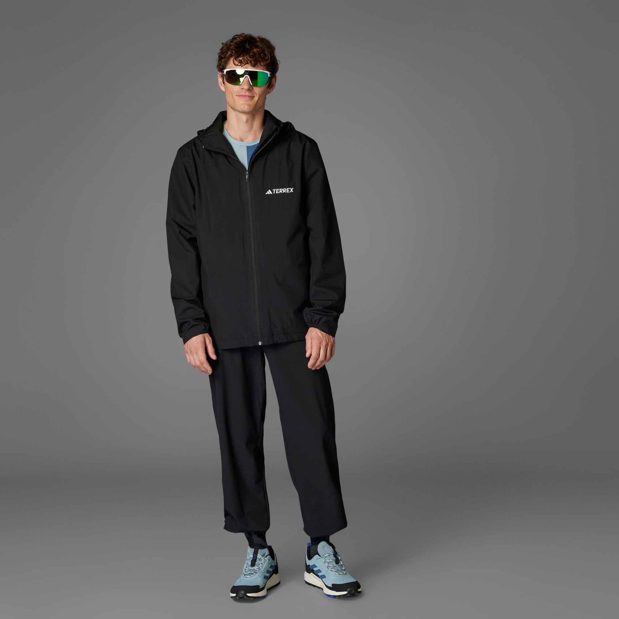 This is a great waterproof jacket. Made of strong and not to bulky material,which holds up well in wet and windy weather. Which you’d expected from terrex jackets. Love the colour,pack away hood and side zip pockets.