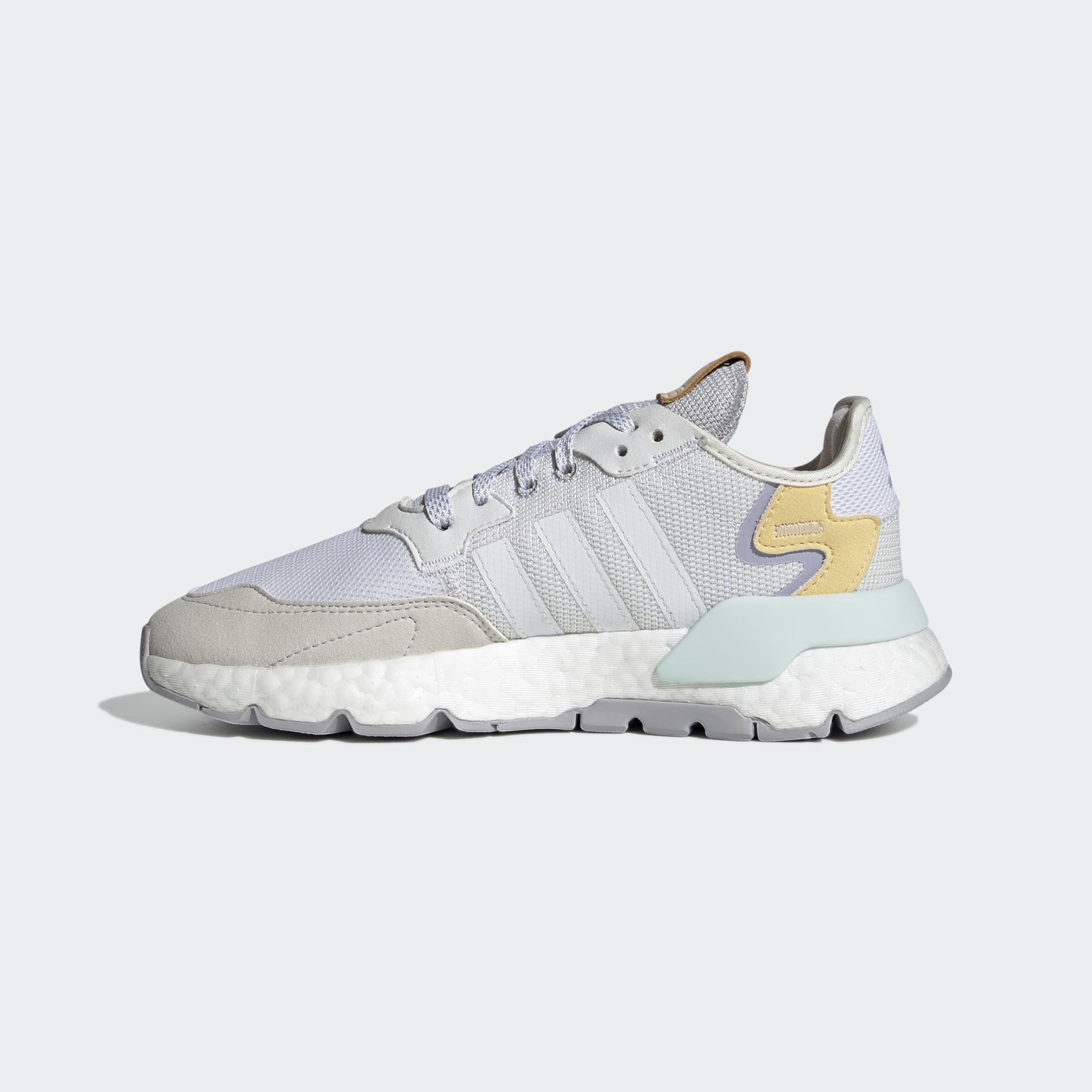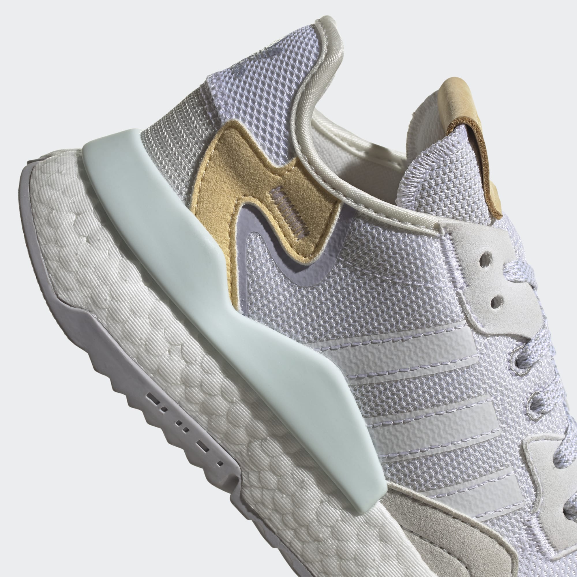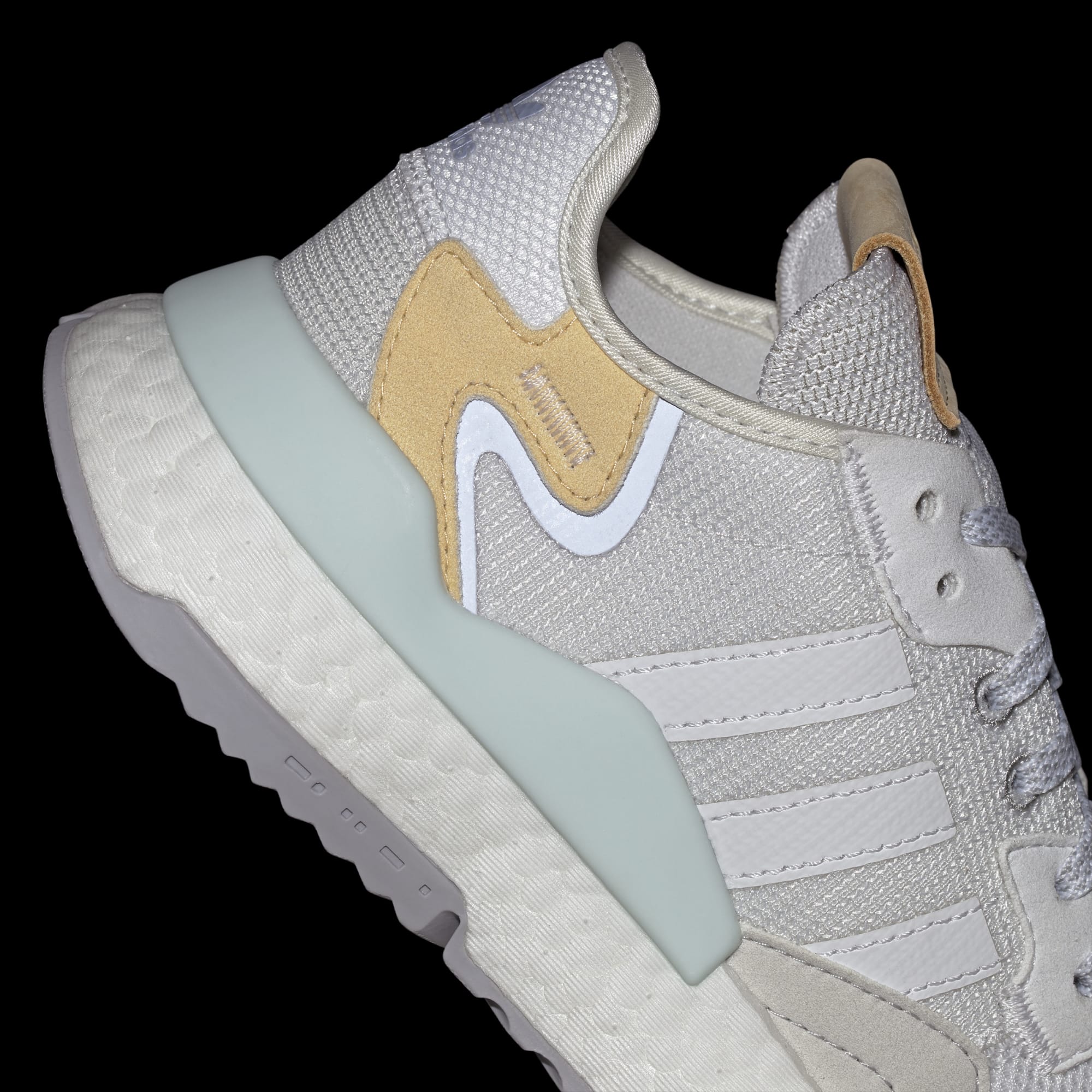Özgün Nite Jogger ayakkabı, adidas'ın tamamen reflektörlü ilk koşu ayakkabısıydı. Bu model ise aslına sadık olarak üretilmiş olsa da koşu temel alınarak tasarlanmadı. Yine de günün temposuna ayak uydurmak için Boost yastıklaması ile sonsuz enerji dönüşümü sağlar. Bu ürün, plastik atıklara son verme hedefimizin bir parçası olarak geri dönüştürülmüş içerik kullanılarak üretilmiştir. Saya üretiminde kullanılan parçaların %20'si, %50 geri dönüştürülmüş içerikle tasarlanmıştır.