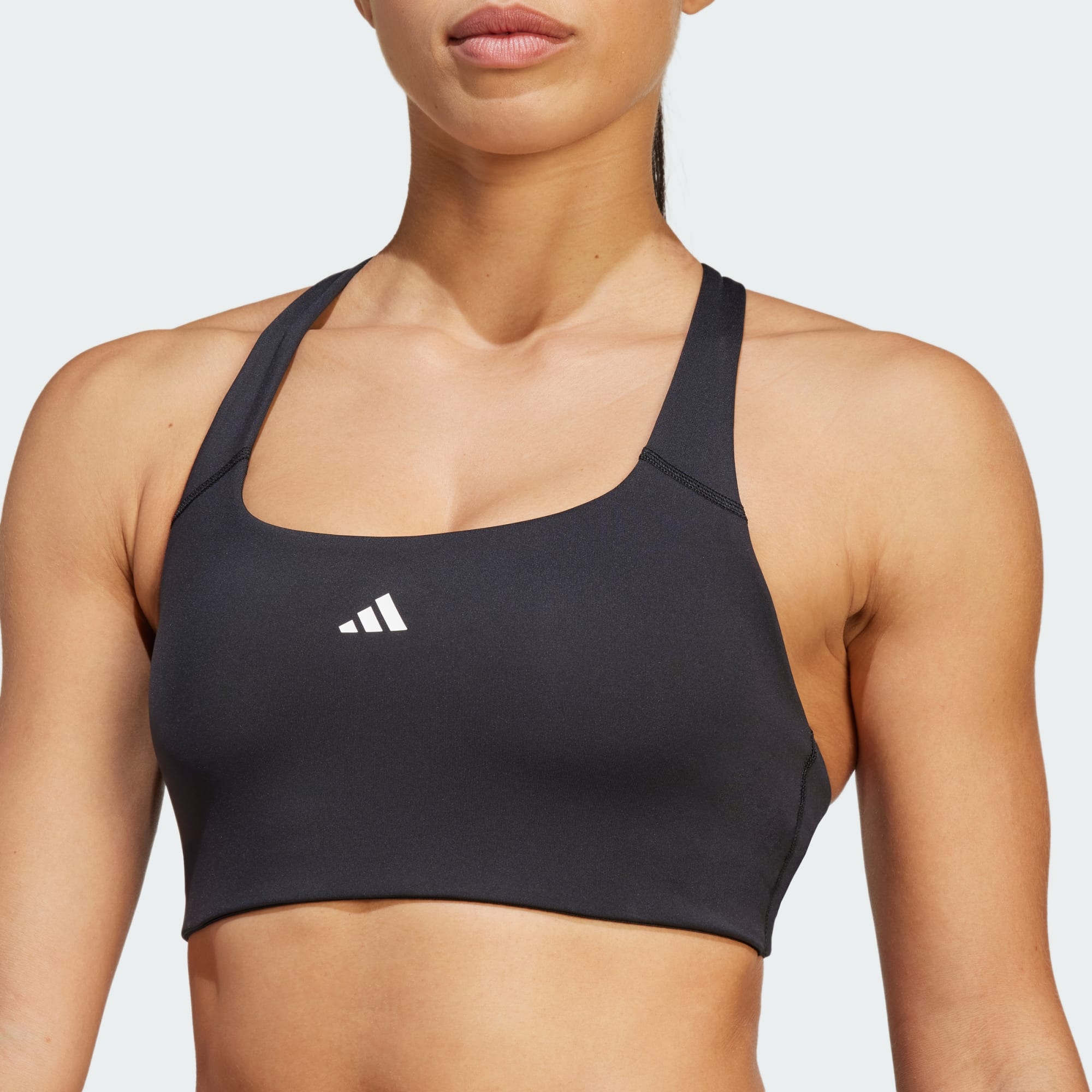 Belirli oranda geri dönüştürülmüş malzemelerle üretilen ve yüksek performans sunan adidas sporcu sütyeni.