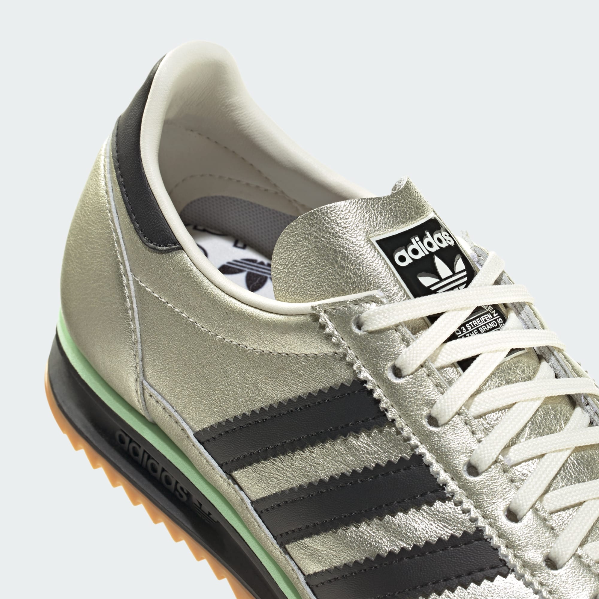 Arşiv adidas ayakkabılarının metalik bir yeniden yorumu.