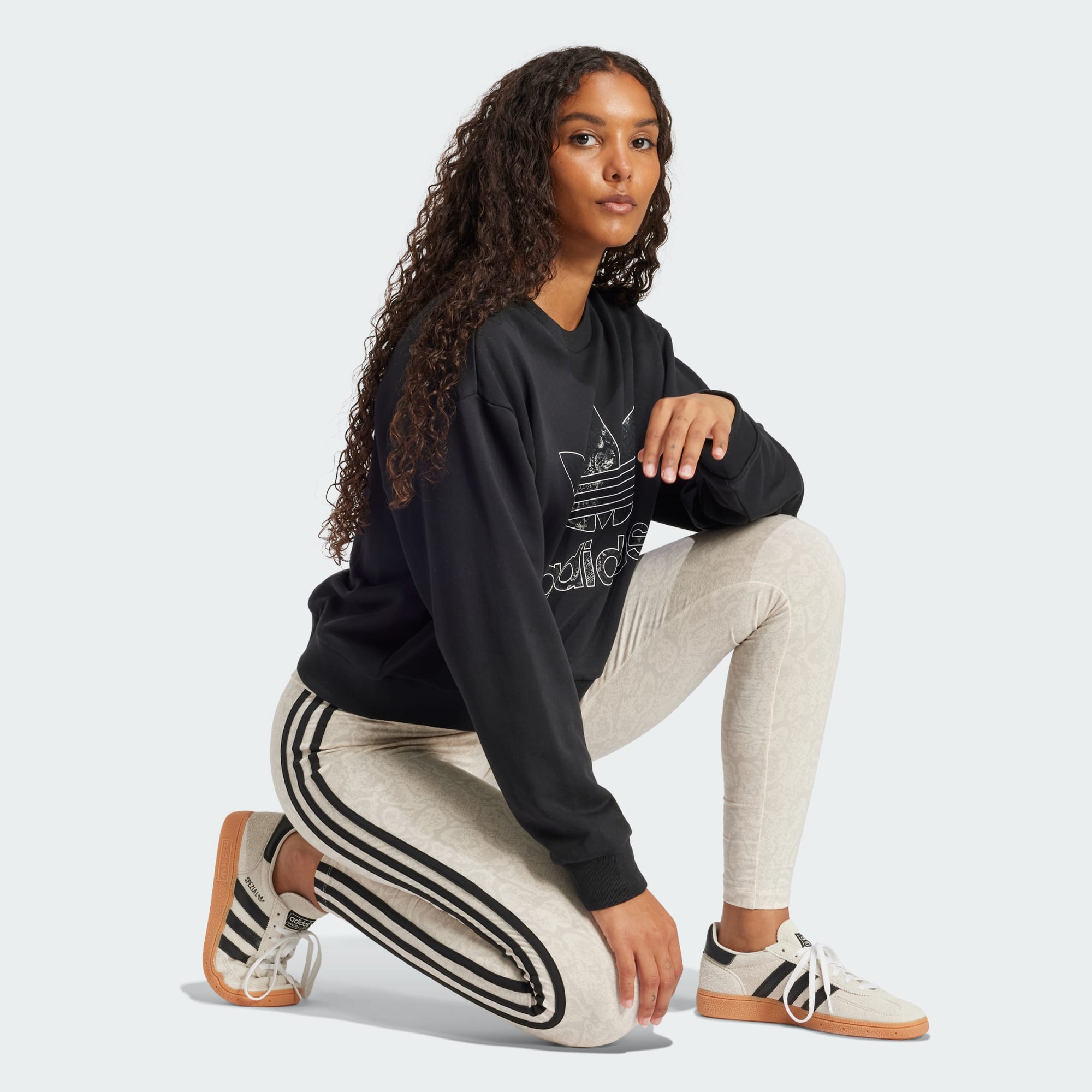 Bu bisiklet yakalı adidas sweatshirt ile zahmetsiz bir stil sergile. Yumuşak pamuklu Fransız havlu kumaşından üretilen model, günlük kullanım için son derece konforludur. Ribana manşetleri ve bol kesimi ile rahat bir tarz yaratır. Ön kısmındaki yılan derisi baskılı Trefoil ile stiline zarif bir dokunuş katar.