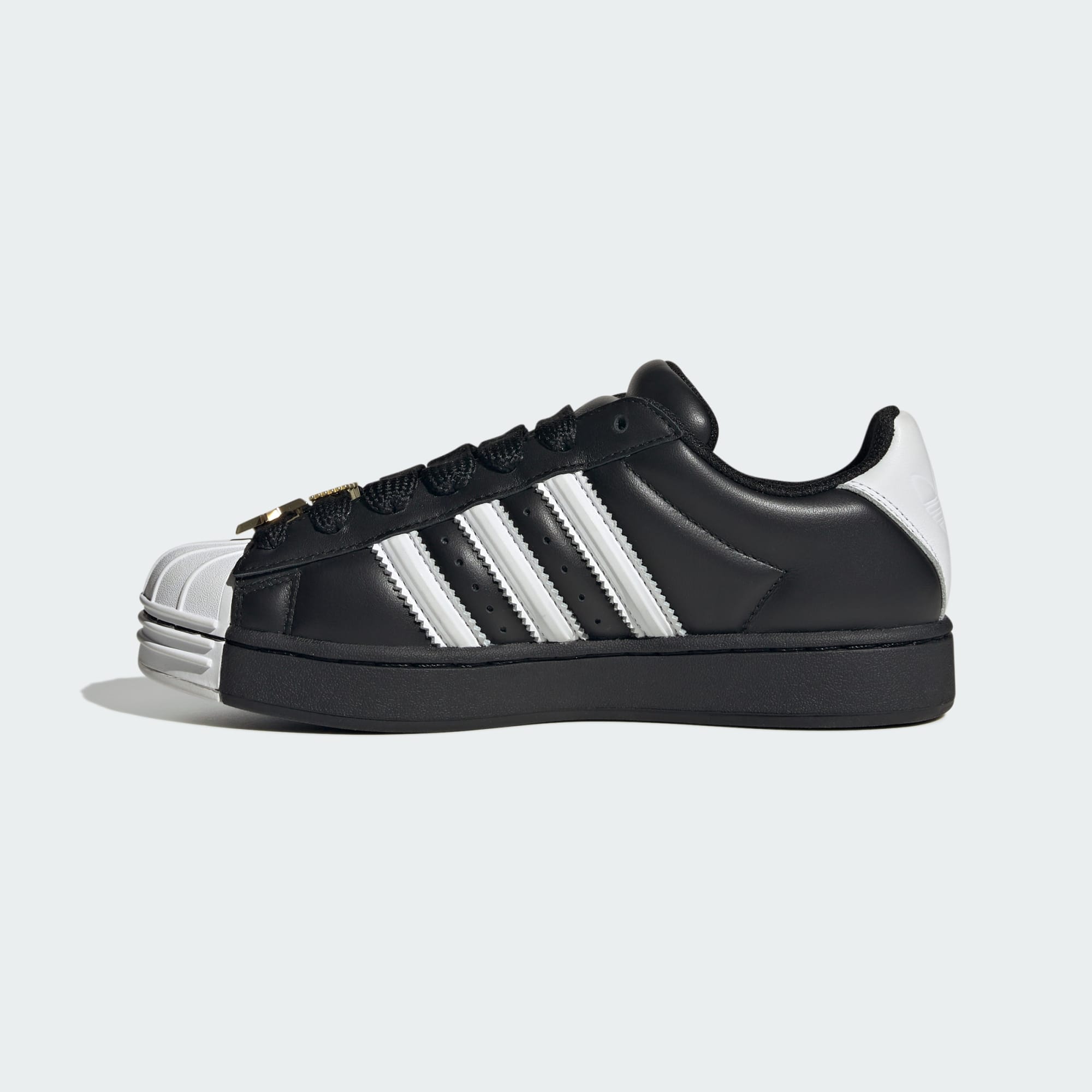 Retro bir tarz için kalıplı şeritli ve kalın bağcıklı kalın yapılı Superstar ayakkabı.