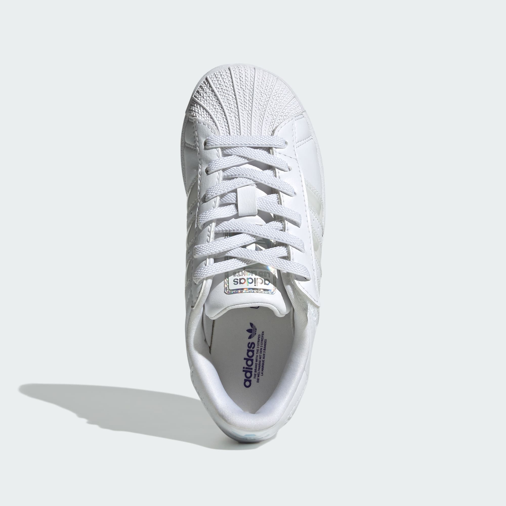 adidas Superstar ayakkabılar basketbol sahalarında ilk kez sahne aldıktan sonra onlarca yıl boyunca sokaklara damga vurdu. Bu ayakkabılar ünlü kauçuk burun yapısı ve deri üst yüzey gibi onları klasik yapan ikonik detayları koruyor. 3 bant'a entegre edilmiş ekolayzır ışık efektleri çocukların çok hoşuna gidecek. Ayakkabının dış yan kısmındaki düğmeye basarak üç farklı efekt arasında geçiş yapabilir veya efektleri açıp kapatabilirsiniz.