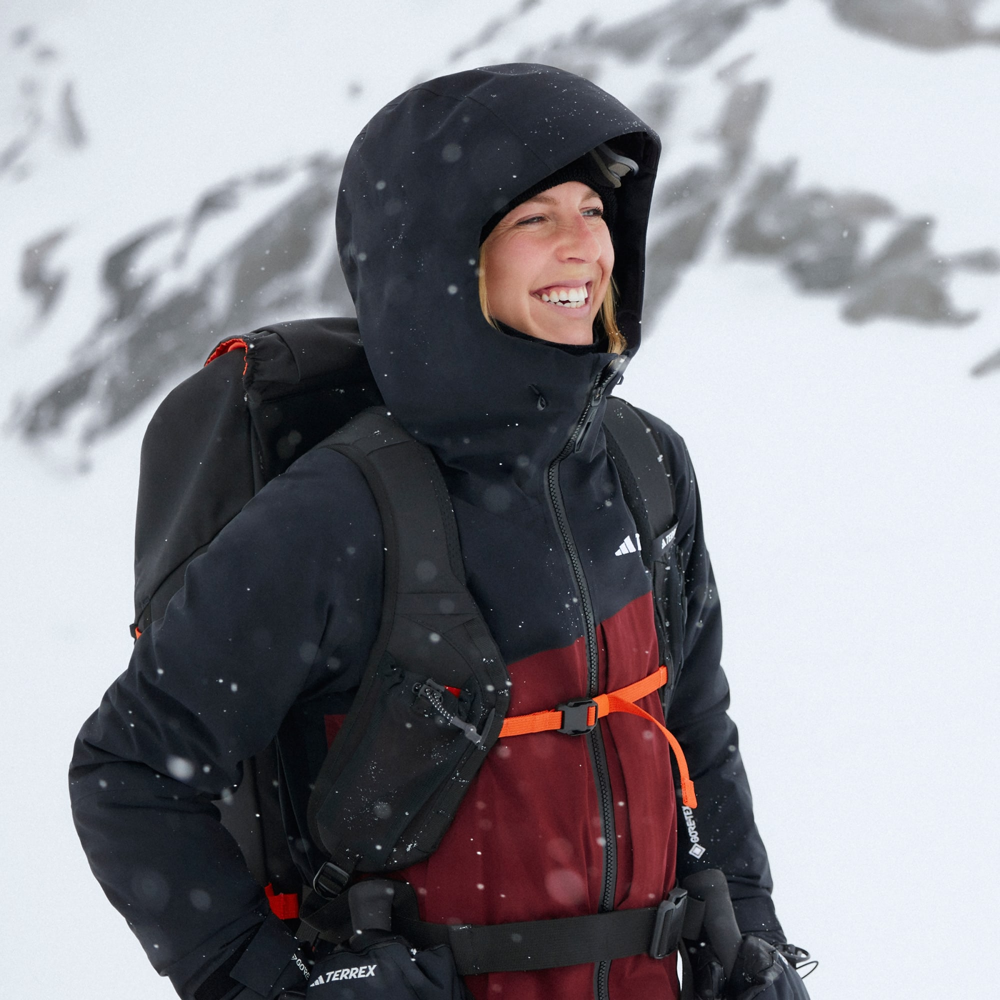 Ayarlanabilir kapüşon, kasklı ya da kasksız giyilebilecek şekilde tasarlandı. Lastikli kar eteği, karı dışarıda tutmak için geliştirildi.
