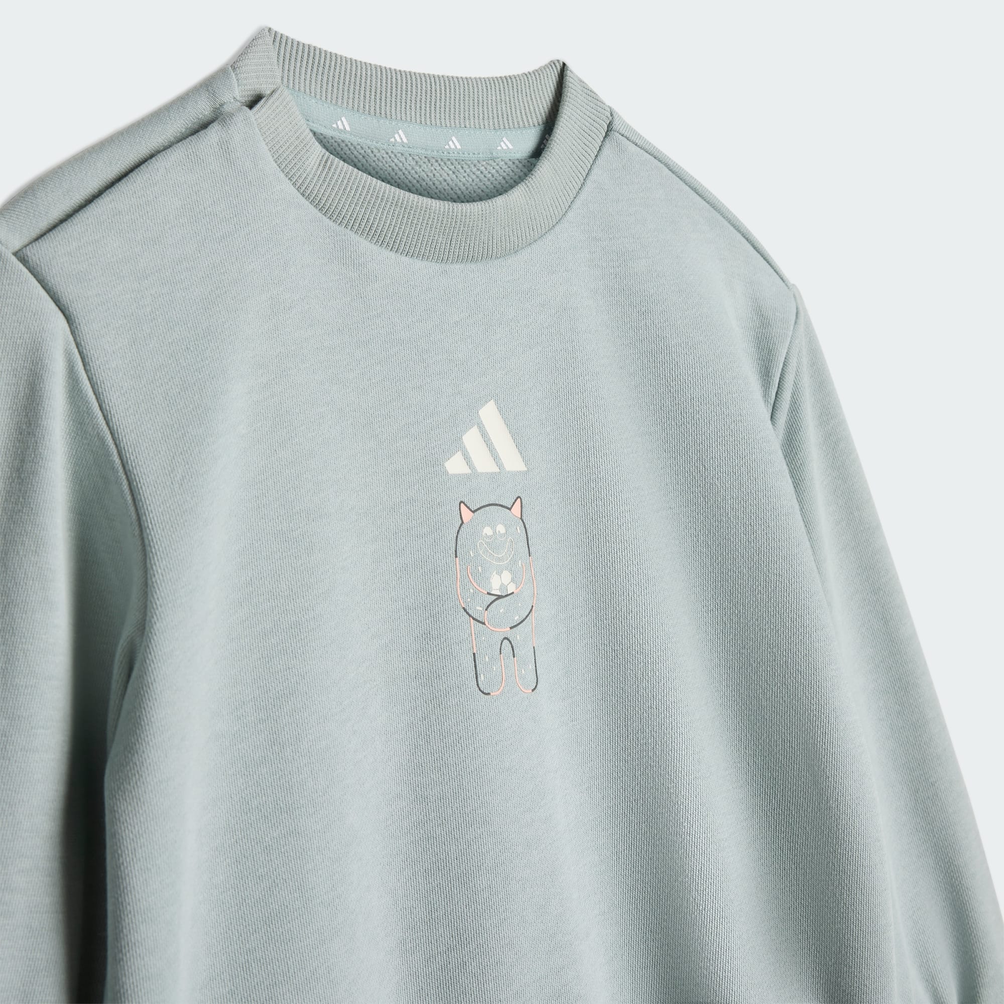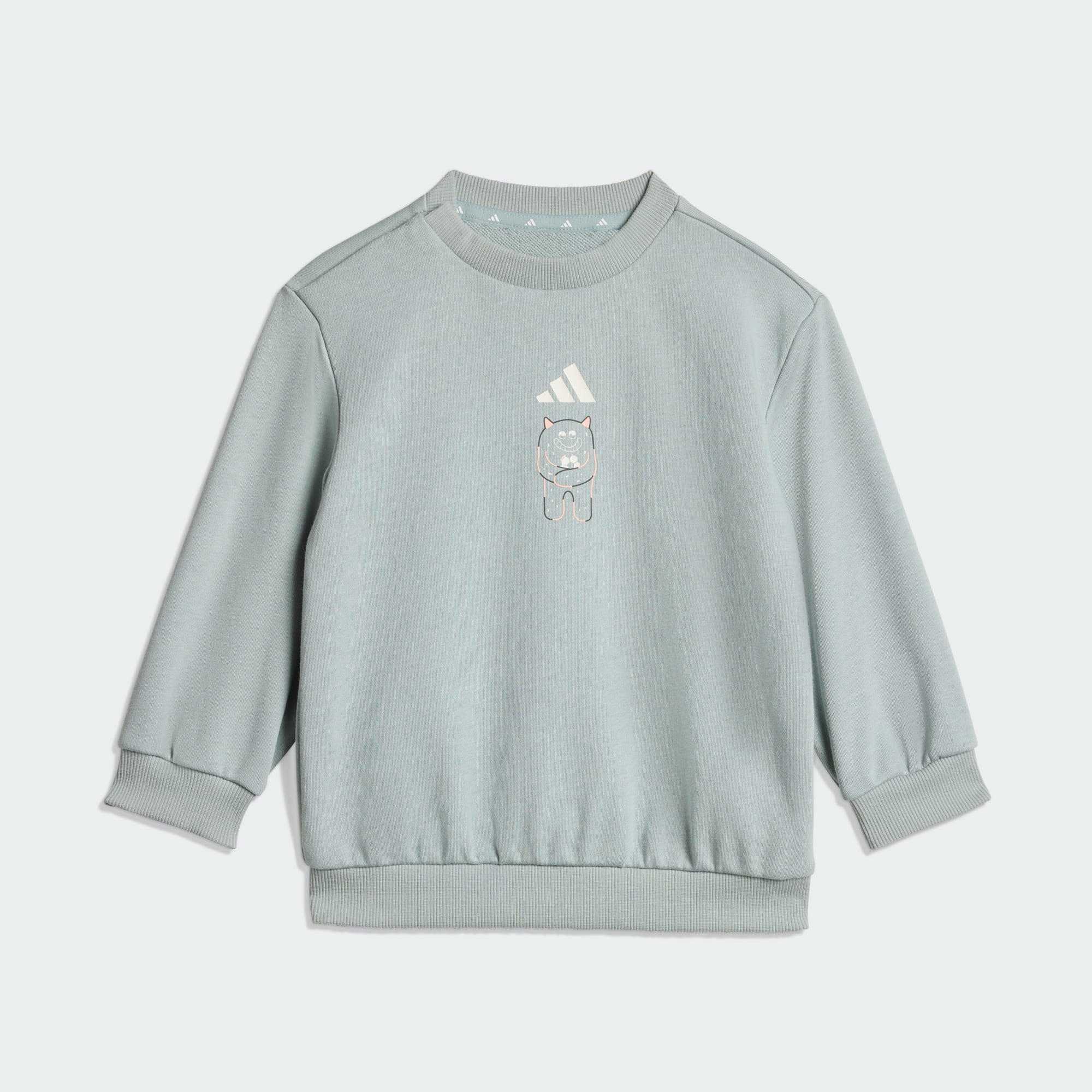 Tiro_Nster Jogger Eşofman Takımı, eğlenceli tasarımı gün boyu konforla buluşturuyor. 2026 Dünya Kupası heyecanından ilham alan bu takımda, her biri bir futbol takımında önemli bir rol üstlenen sevimli futbol temalı canavarlar yer alıyor. Yumuşak havlu kumaştan üretilen bu jogger eşofman takımı, bol kesimi sayesinde bebeklerin oyun zamanı boyunca özgürce hareket etmelerini sağlar. Bisiklet yakası ve orta yükseklikteki bel kısmı ile konforlu kesim sunarken, sevimli canavar futbol baskısı ile eğlenceli bir görünüm sergiler. Göğüste ve sol bacakta yer alan adidas 3 Bar Logosu, görünüme sportif bir dokunuş katar. Üstelik etiketinde sevimli canavar çıkartmaları da var, bu da miniklerin gardırobuna daha fazla eğlence ekliyor. Kaleciden golcüye kadar tüm karakterler, adidas'ın takım çalışması ve işbirliği ruhunu hayata geçiriyor. Bu büyüleyici iki parçalı takım ile özgüvenle oynayıp keşfeden miniklerin hayal güçlerini özgür bırak.