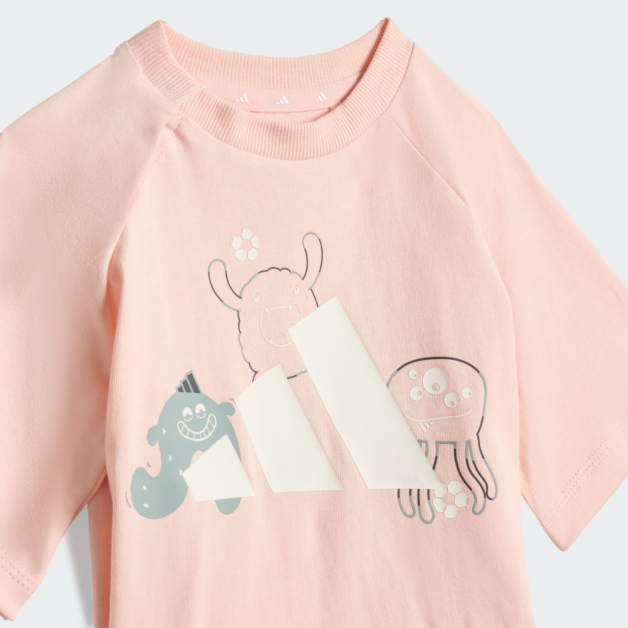 Tiro_Nster tişört takımı, sevimli canavar karakterlerinin yaramaz enerjilerini futbol stiline taşıyarak miniklerin gardırobuna eğlence katar. Bol kesimli ve yumuşak süprem kumaştan üretilen bu takım, ciltte nazik bir his bırakır. Günlük konfor ve gün boyu rahat bir kullanım için tasarlandı. İkonik adidas 3 Bar Logosu, sportif bir görünüm ve bebeklerin enerjisine ayak uyduran parlak ve neşeli bir dokunuş katar ve tişörtün göğüs kısmında ve şortun paçasında gururla sergilenir.