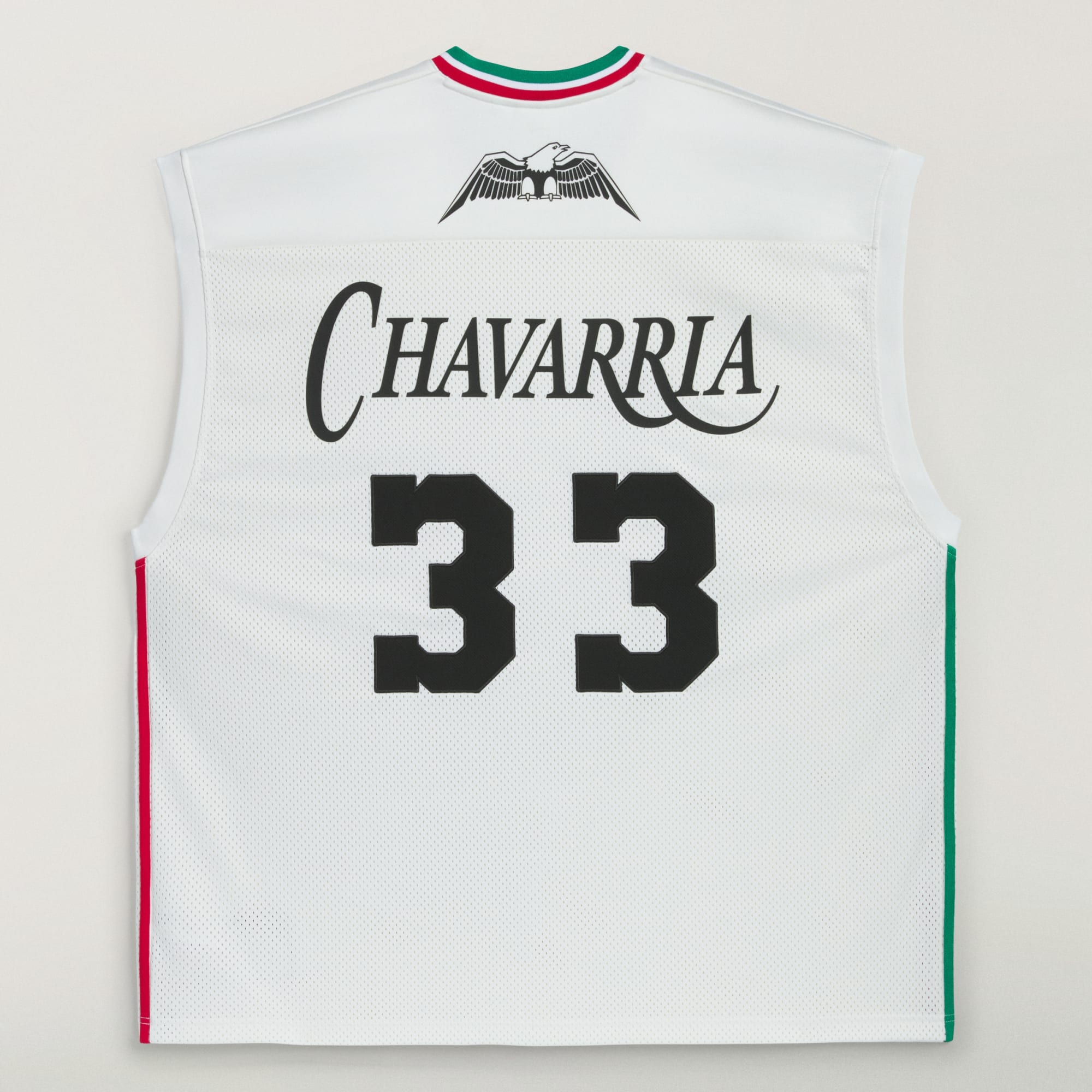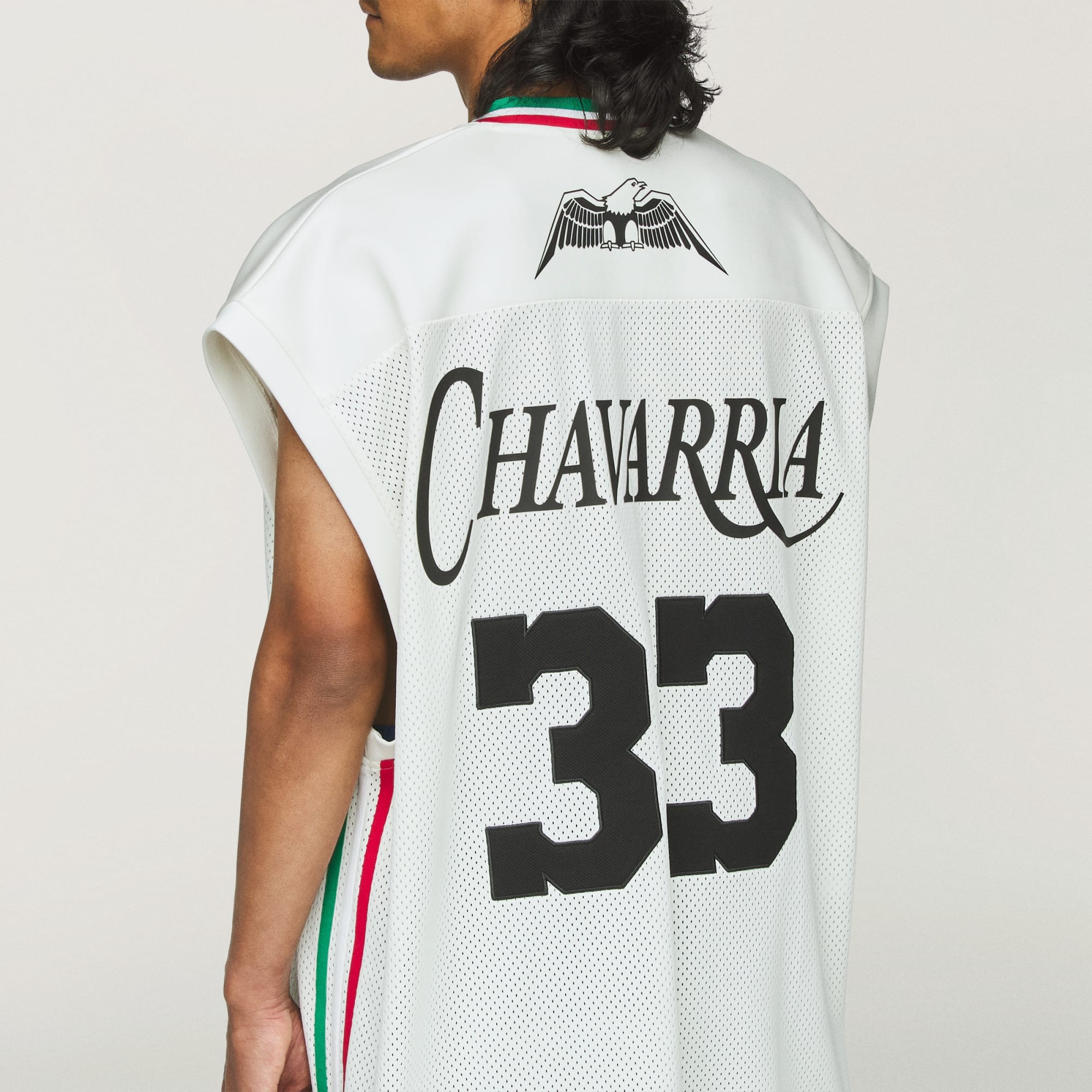 Chavarria Basketbol Forması, olağanüstü kalite ve konfor sağlamak için ağır file ve çift plaka örme ara kumaş karışımından üretilmiştir. Basketbol forması, gövde kısmında hacimli oranlarla tasarlanmıştır. İşlevsel detaylar arasında üç bantlı ribana yaka yer alır. Marka logosu, ön göğüs kısmının ortasındaki nakışlı çift Trefoil, nakışlı Chavarria logosu ve arkada bulunan 33 sayısıyla sembolize edilmiştir. Gövdenin yan taraflarına doğru adidas 3 bantlı logosu uygulanmıştır.