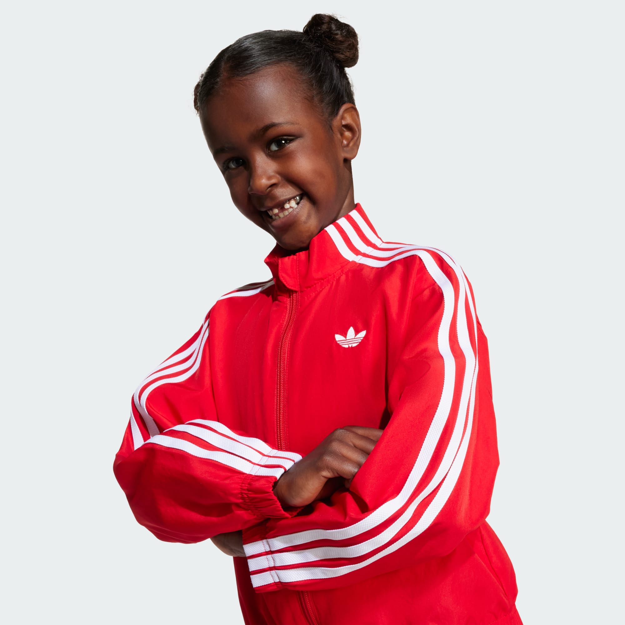 Çocuklara özel bu eşofman takımıyla genç sporcular günün getireceği her şeye hazır olacak. 2000'li yılların futbol koleksiyonu Teamgeist'tan ilham alan tasarım, ince çizgileri ve cesur renkleri ile öne çıkar. Bol kesimi, gün boyu konfor sağlarken dokuma kumaşı, yumuşak ve dayanıklıdır.
