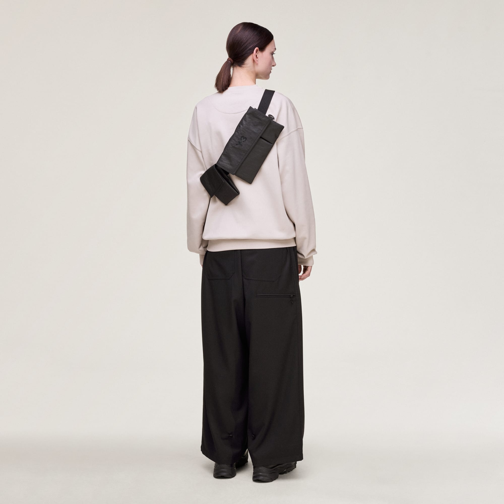 İşlevsellik için birden fazla cebe sahip, yeniden yorumlanan Y-3 çanta.