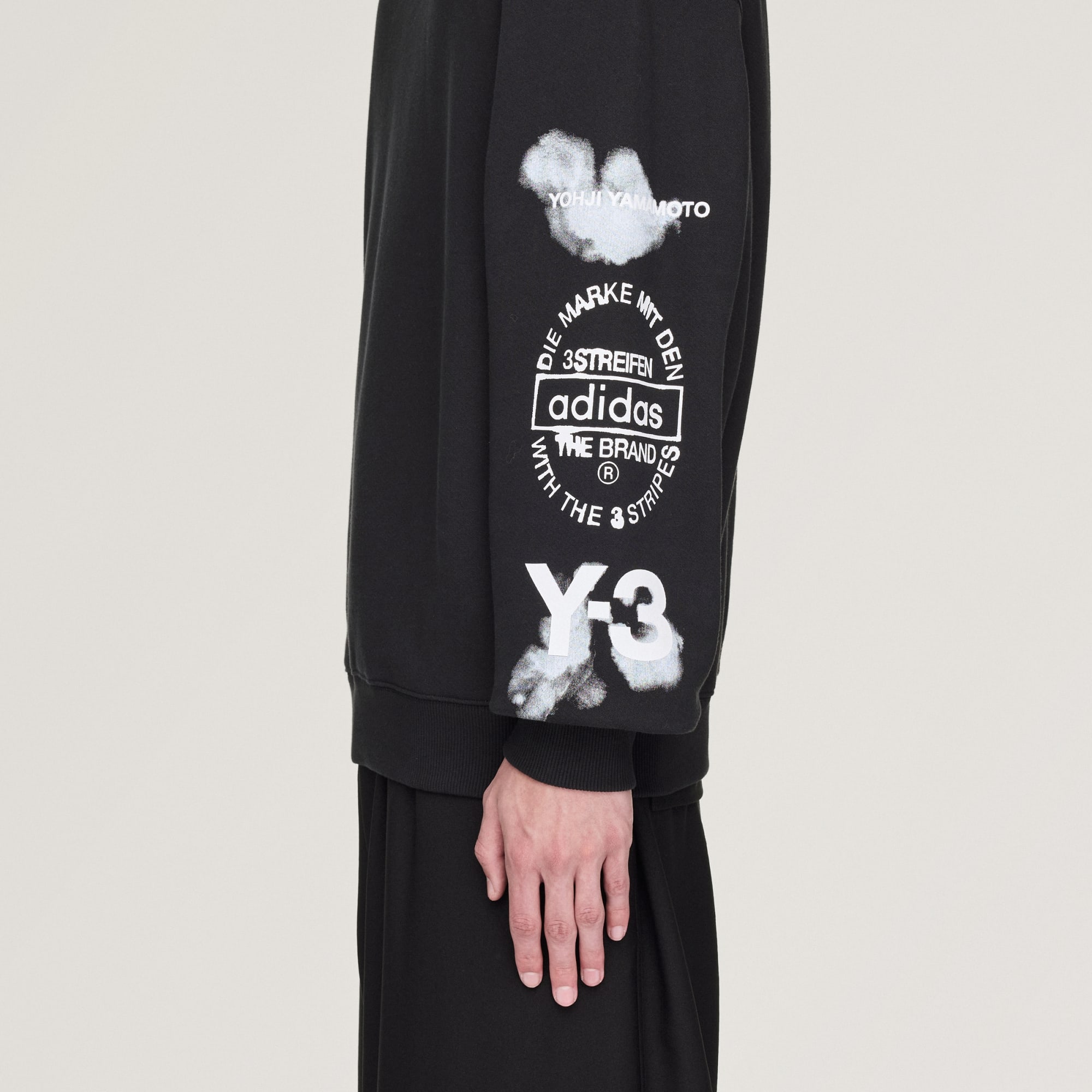 Y-3 ruhunu taşıyan bir sweatshirt.