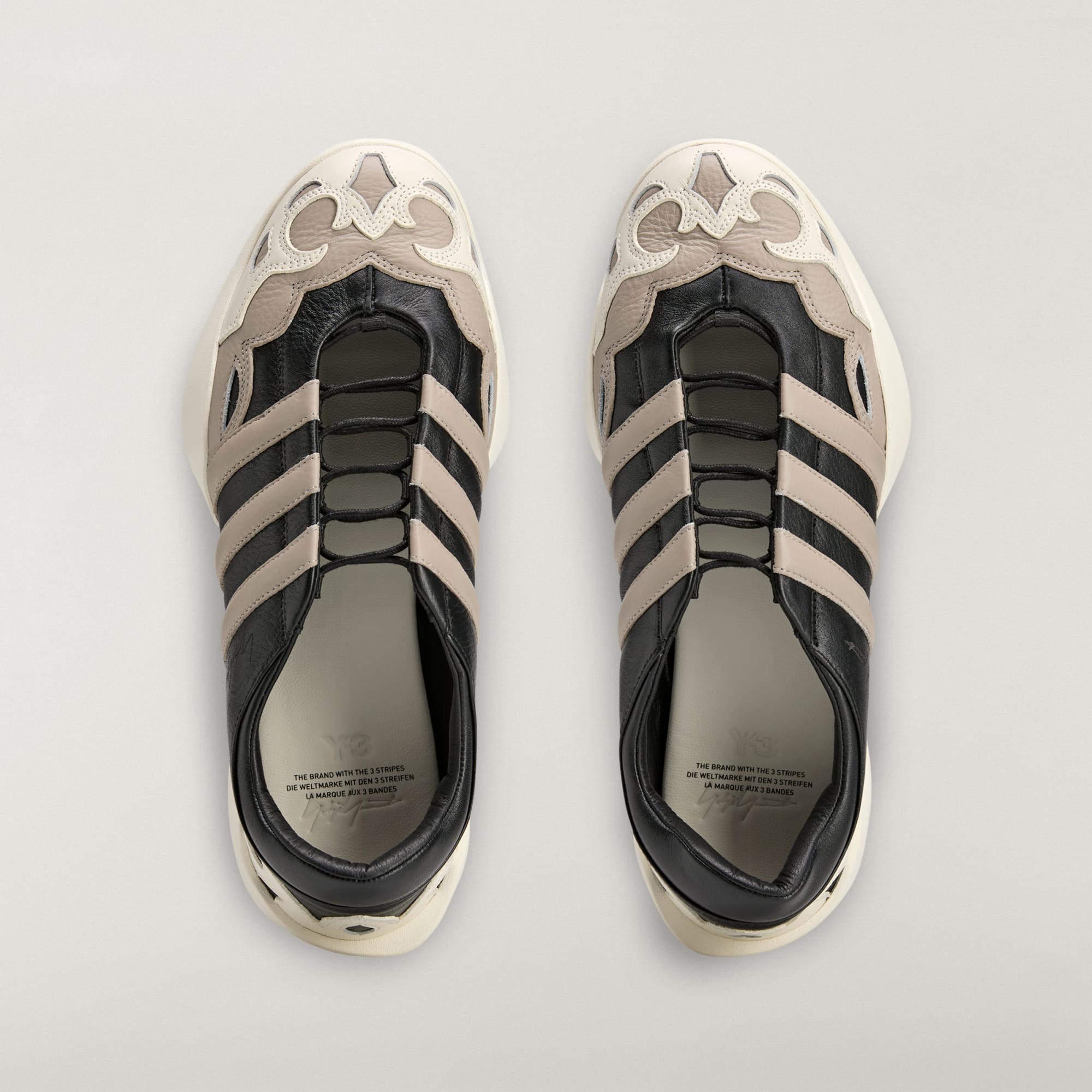İkonik 3 Bant detayının yanında bulunan lazer işlemeli Yohji Yamamoto imzası özgünlük ve zarafet dokunuşu katar.